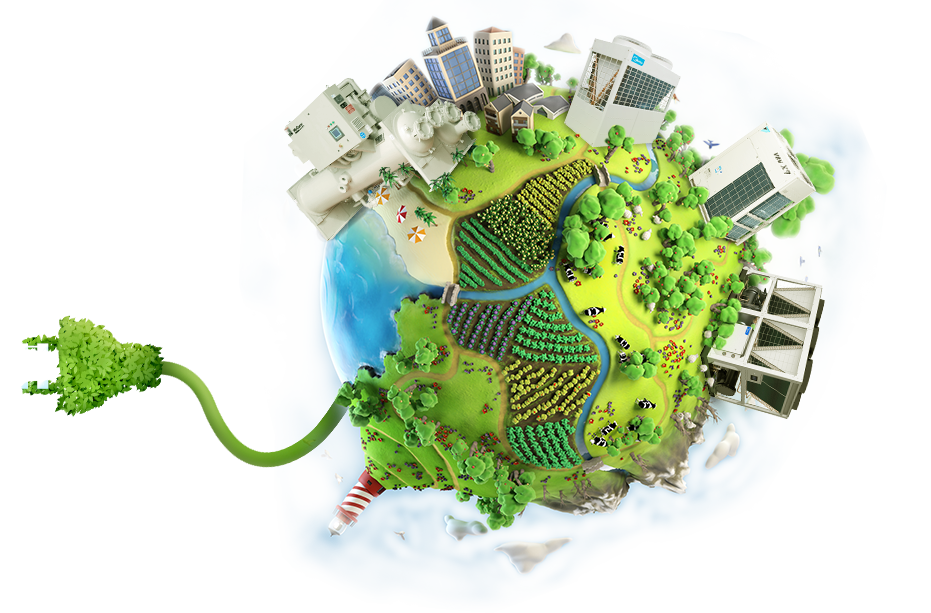 產品系列:美的的大設備中央空調、空氣源熱泵系統、風冷熱泵主機和太陽雨的太陽能集熱板 ABOUT MORE